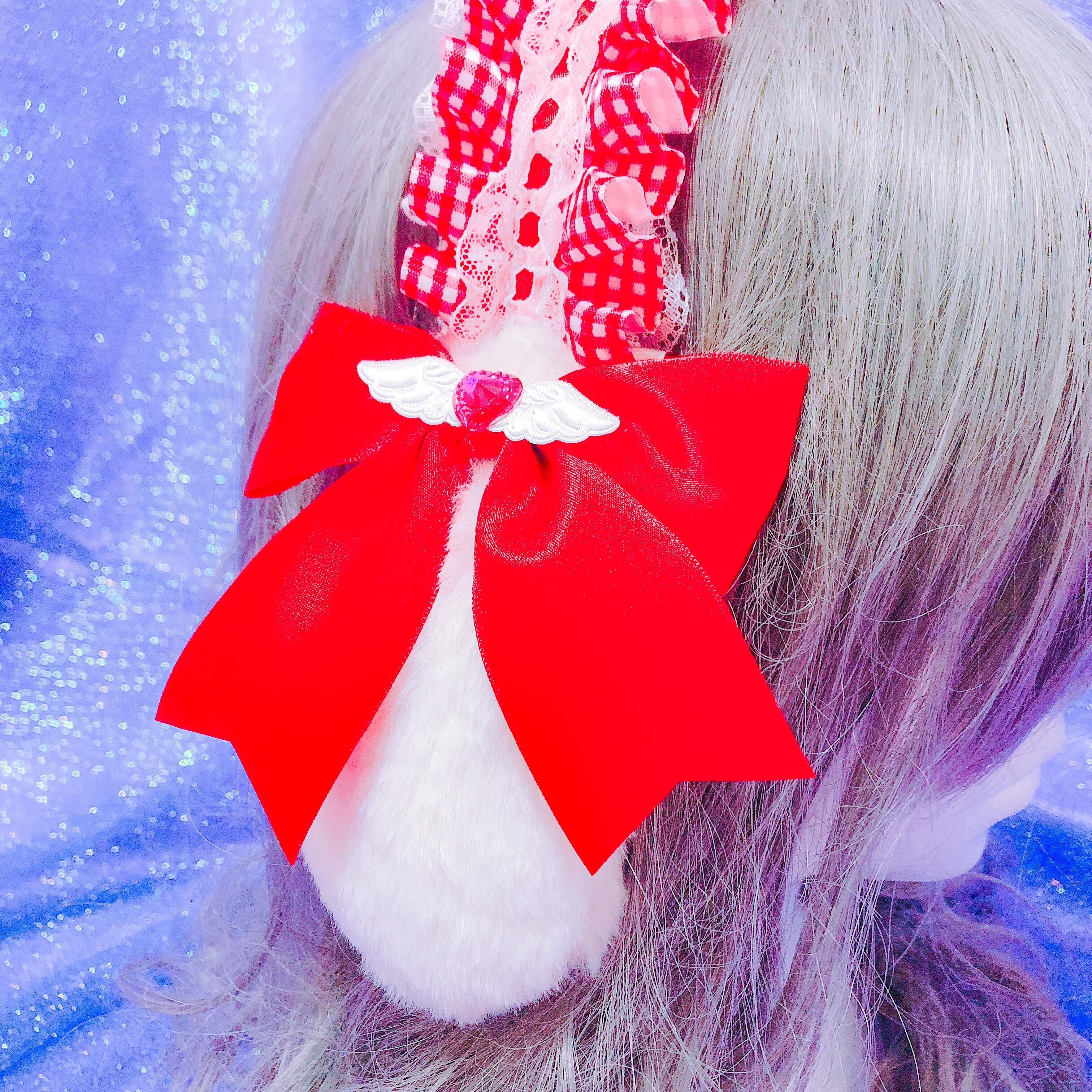 さらにふわふわのたれみみとリボンを付けた