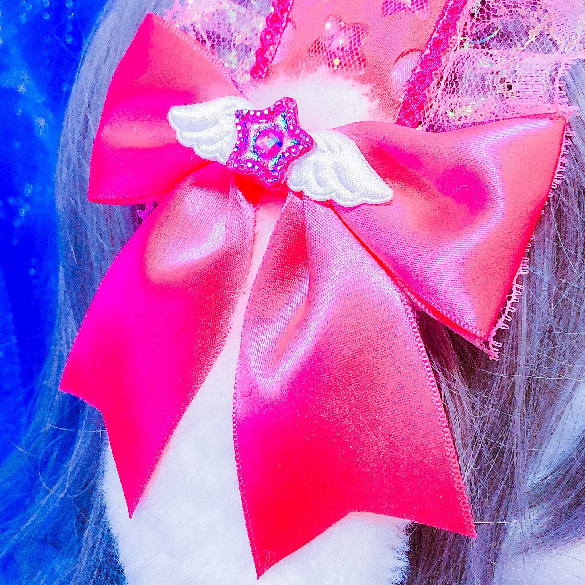 キラキラレースにふわふわのたれ耳とリボンがついたゆめかわいいヘッドドレスです♡