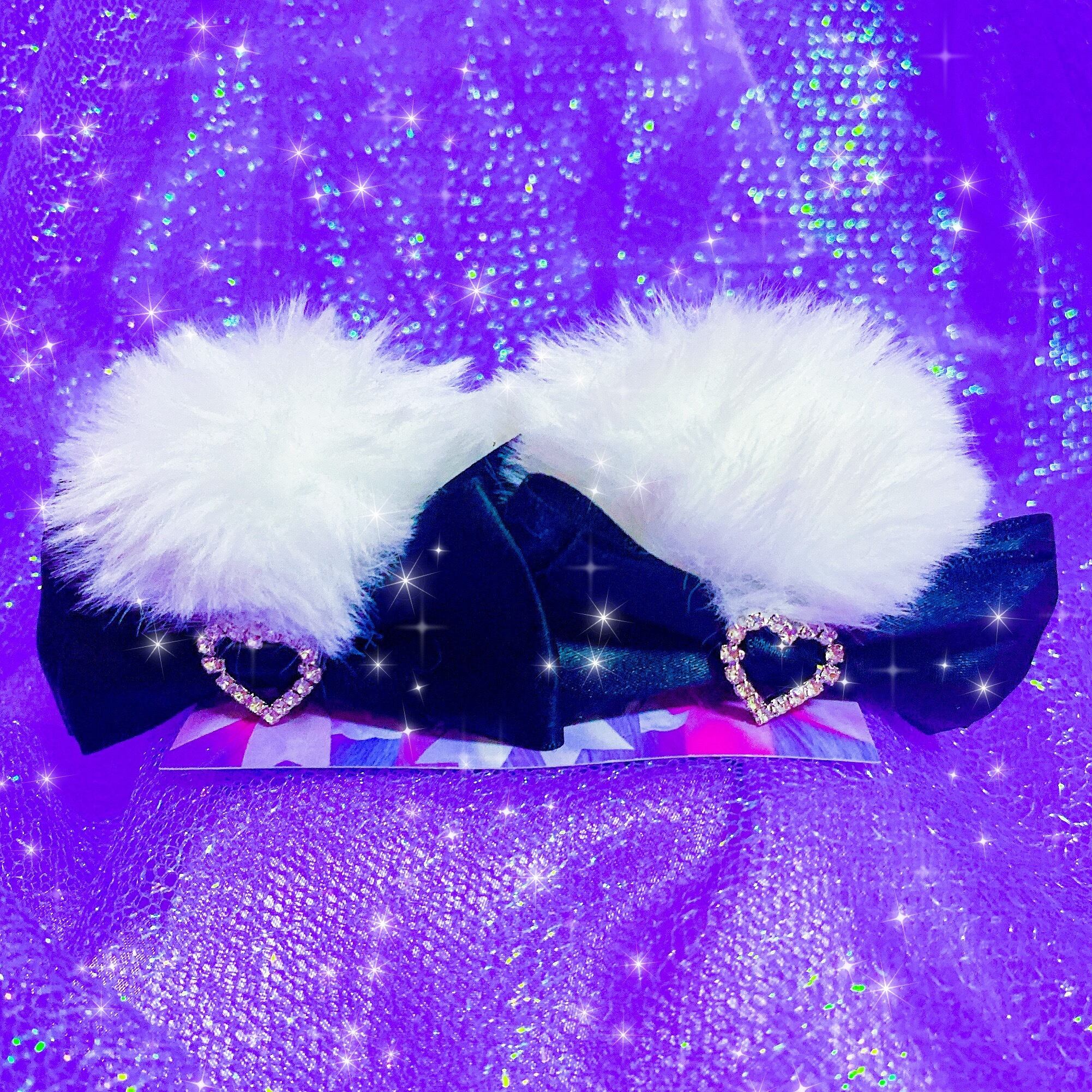 ふわふわぽんぽんくま耳クリップ ホワイト×ブラック