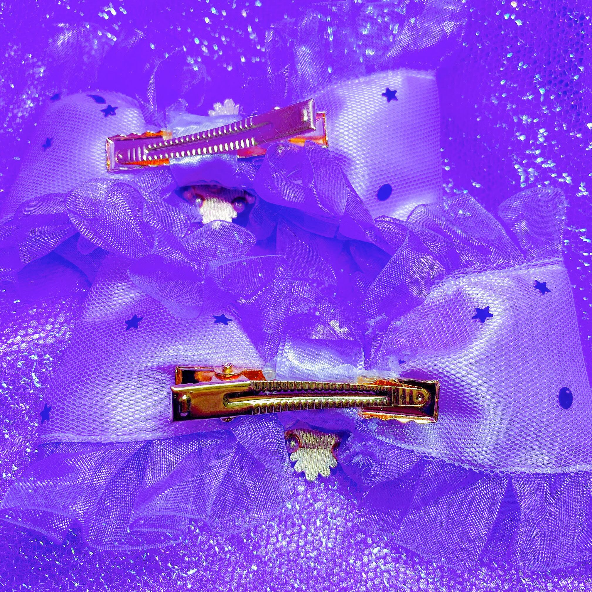 リボンとチュールの間にビーズが入った魔法少女のようなリボンクリップです♡