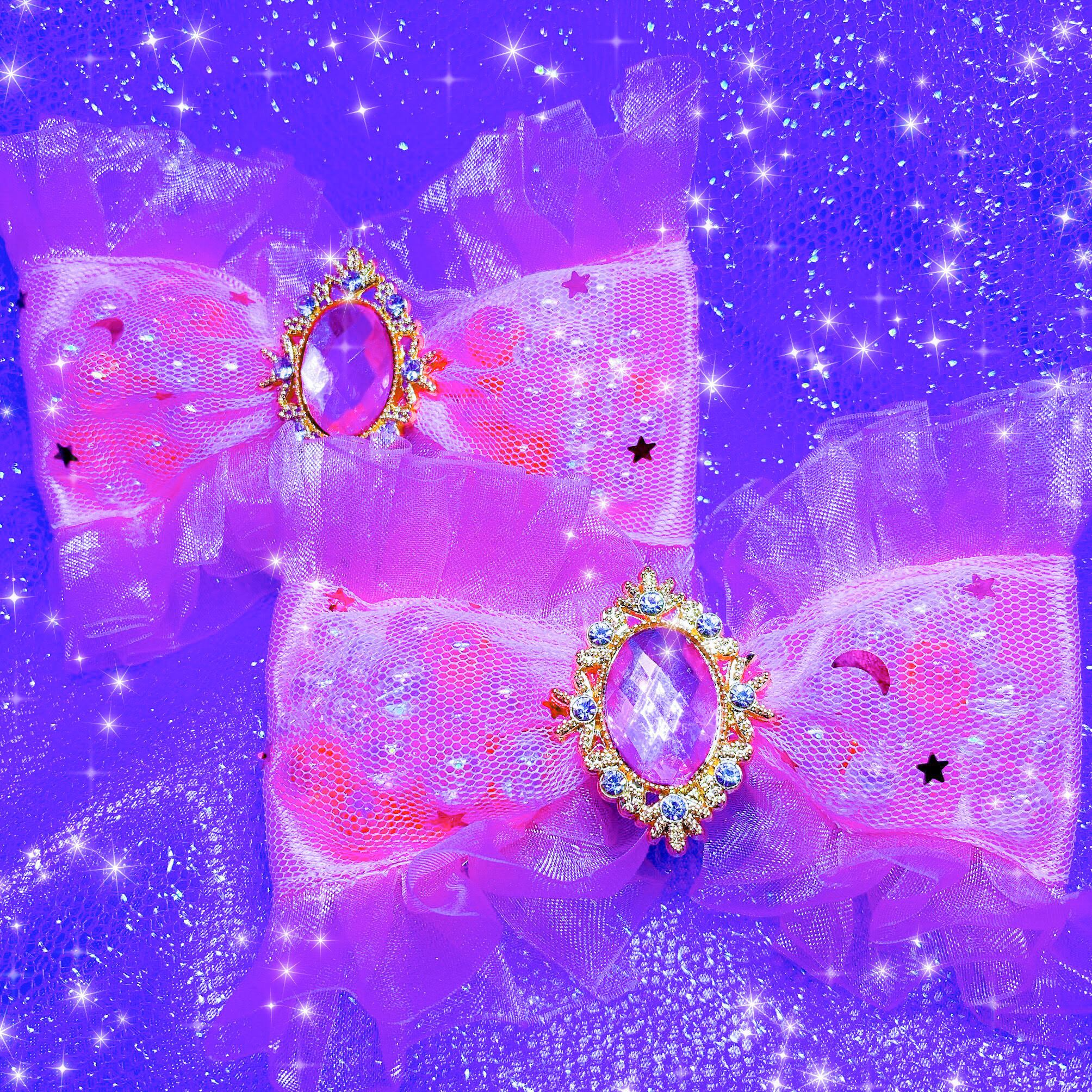 リボンとチュールの間にビーズが入った魔法少女のようなリボンクリップです♡