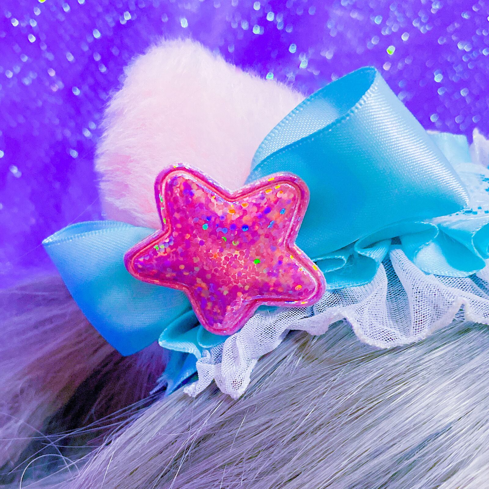 ふわふわねこ耳カチューシャ 爽やかミントグリーン×ライトピンク
