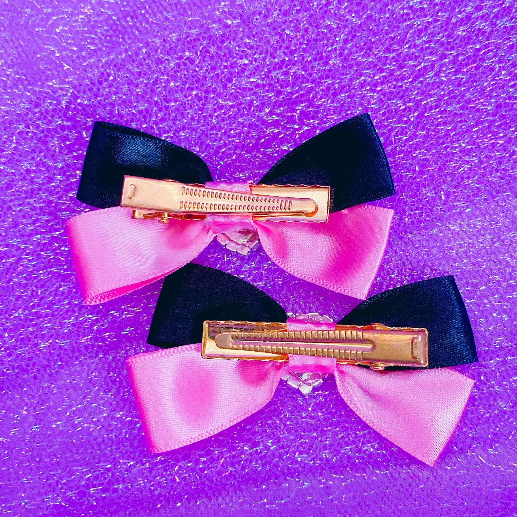 キラキラミニリボンクリップ ライトピンク×ブラック