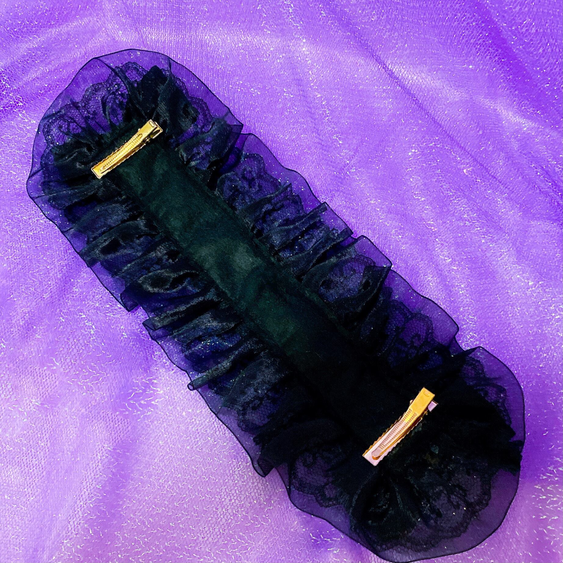 編み上げチェーンヘッドドレス ピンタイプ ブラック