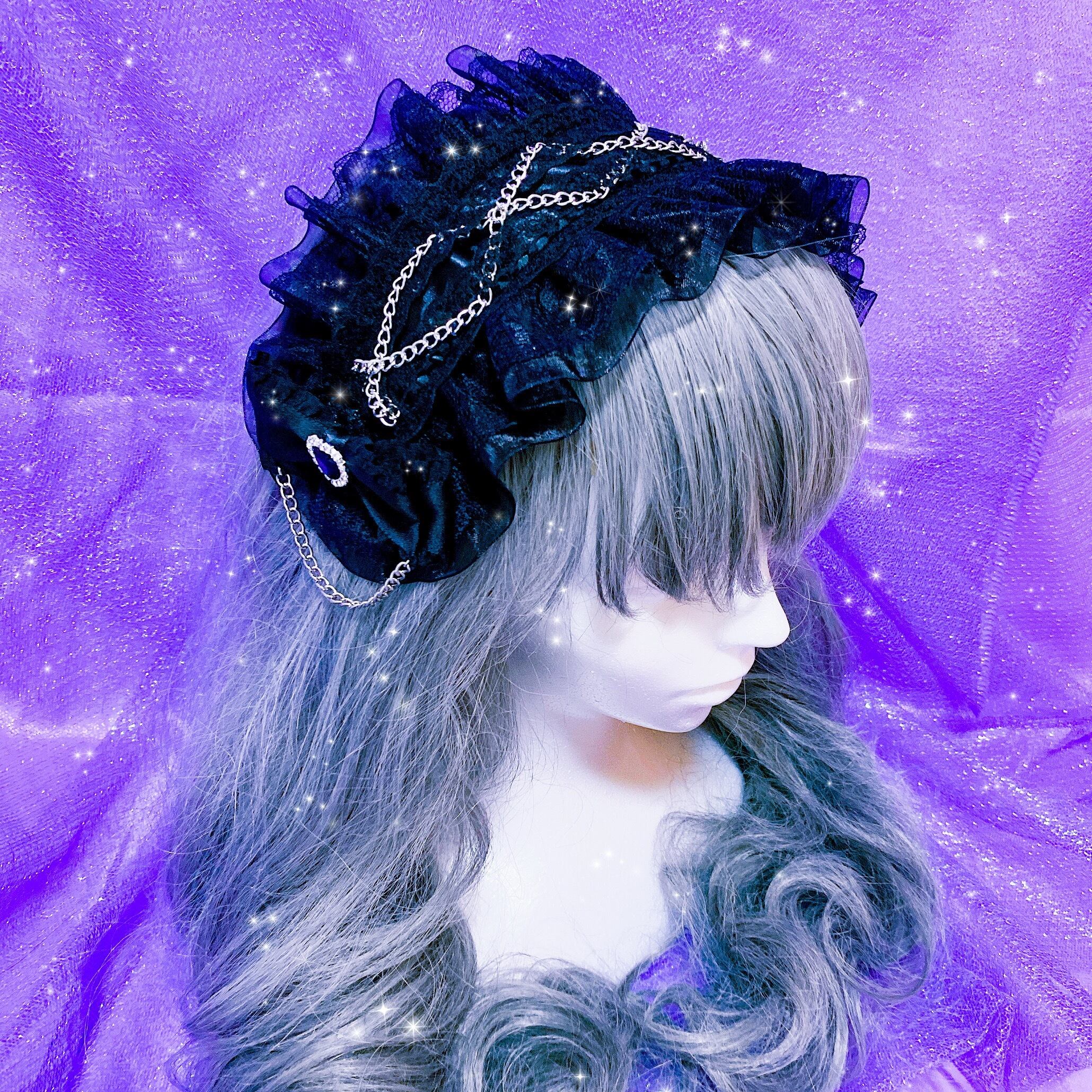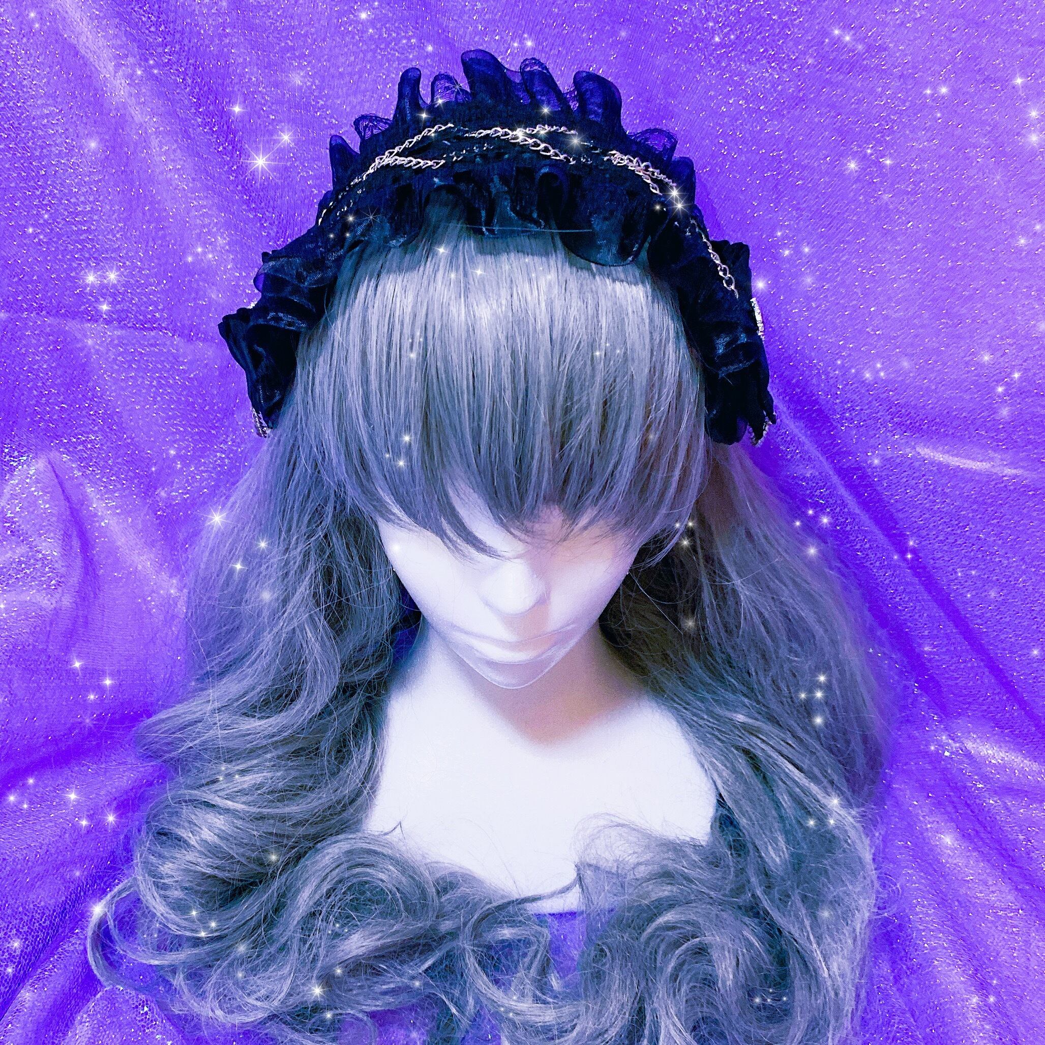 編み上げ部分がチェーンになっているので地雷系にもパンク系にも合わせられちゃう最強ヘッドドレス!
