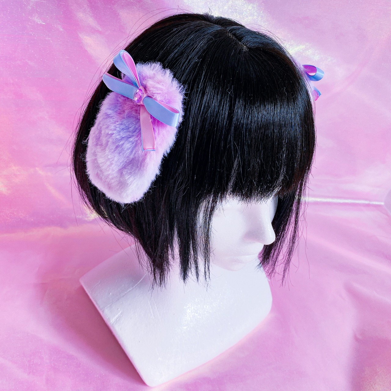 ふわふわたのたれ耳にリボンがついたクリップ♡