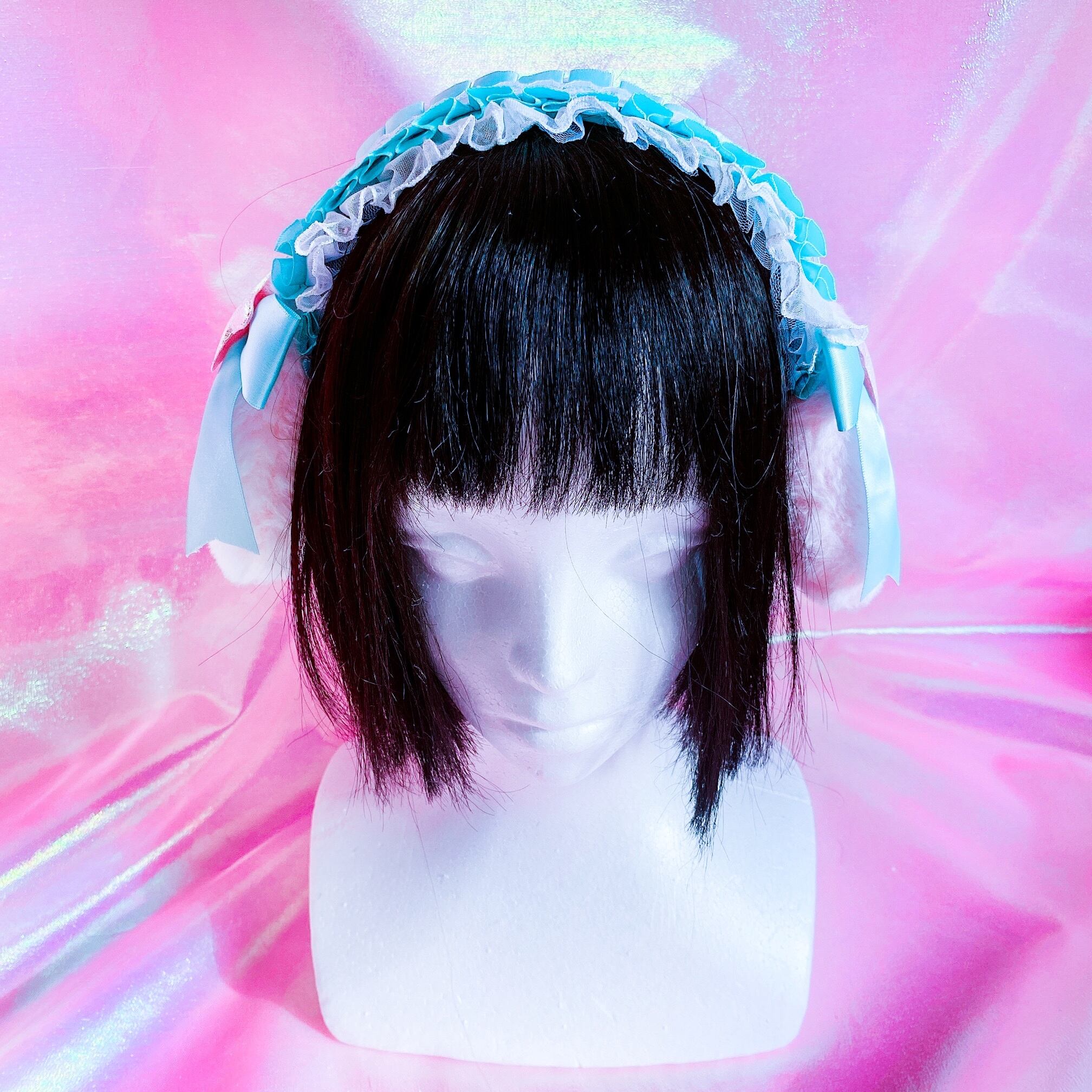 ふわふわたれ耳カチューシャ 爽やかミントグリーン×ライトピンク