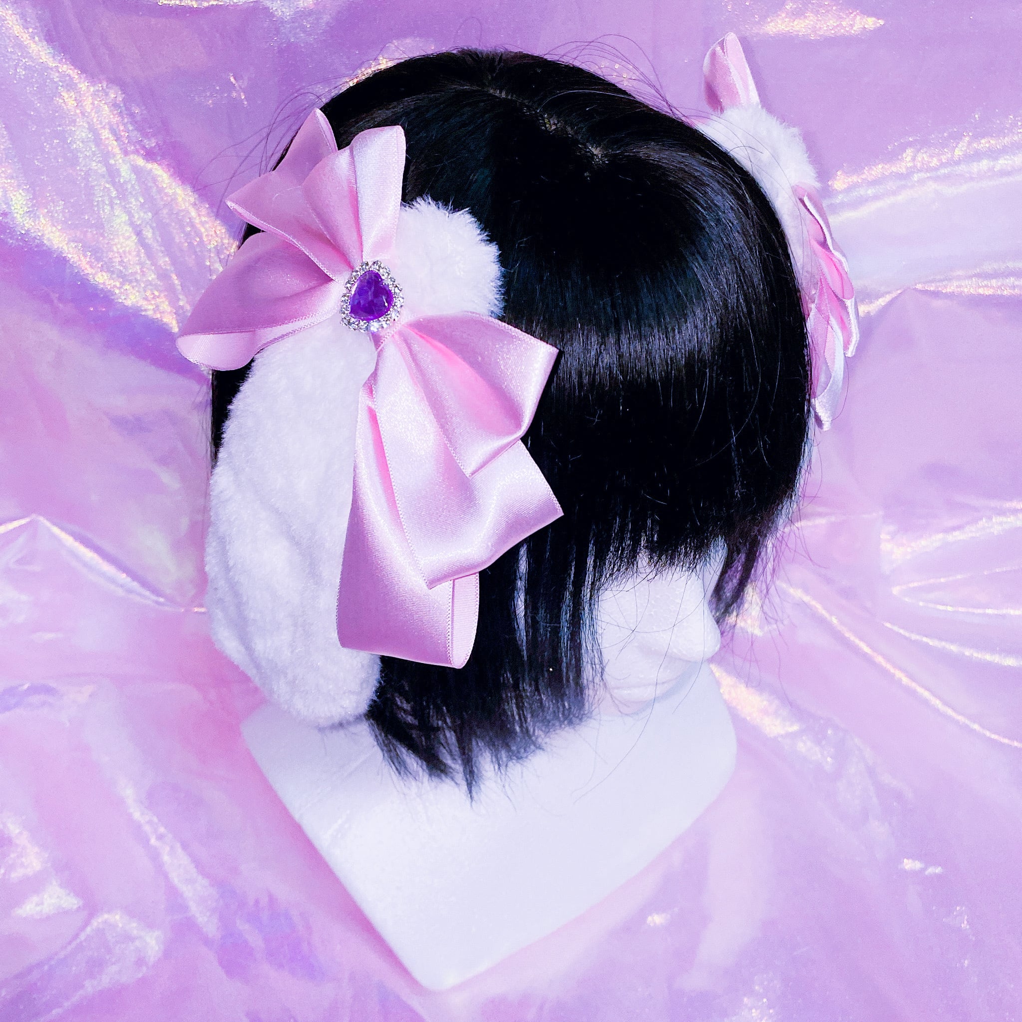 ふわふわたのたれ耳にリボンがついたクリップ♡